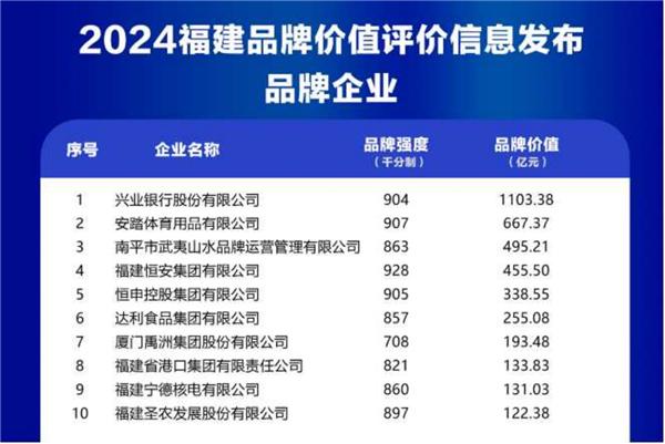 2018年至2021年,“武夷山水”品牌连续四年荣获“中国区域农业品牌影响力排行榜”第三;2023年,荣获“福建首届品牌价值百强榜位列区域形象品牌”榜首,品牌价值489.98亿元。2024年以495.21亿元品牌价值,仅次于“兴业”“安踏”,位列福建省品牌价值百强榜单企业品牌第三位。